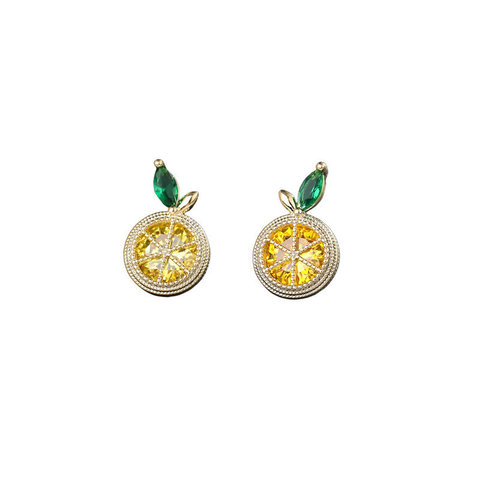 Yaz kadın limon kristal küpe tatlı mikro açacağı Rhinestone elmas sarı turuncu meyve takı ile
